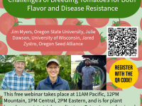 Join eOrganic for a webinar on challenges in breeding tomatoes, with the right combination of great flavor and disease resistance! It takes place on March 24, 2026 at 11AM Pacific, 12 PM Mountain, 1PM Central, and 2PM Eastern Time. It's free and open to the public, and advance registration is required.